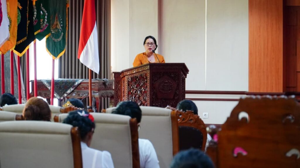 GIANYAR – Peran perempuan dalam pembangunan daerah dinilai semakin strategis. Untuk memperkuat sinergi lintas organisasi perempuan, Ketua Badan Kerja Sama Organisasi Wanita (BKOW) Provinsi Bali, Ny. Seniasih Giri Prasta, mendorong kolaborasi aktif antara Wanita Hindu Dharma Indonesia (WHDI) dan Gabungan Organisasi Wanita (GOW) Kabupaten Gianyar dalam mendukung berbagai program pemerintah daerah.