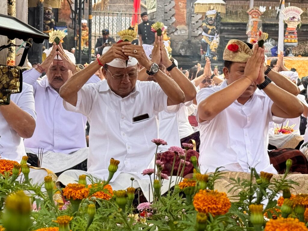 BANGLI – Gubernur Bali, Wayan Koster memohon kerahayuan jagat Bali saat melaksanakan persembahyangan pada Karya Ngusaba Kadasa di Pura Ulun Danu Batur, Kabupaten Bangli pada, Kamis (Wraspati Wage, Watugunung) 2 April 2026.