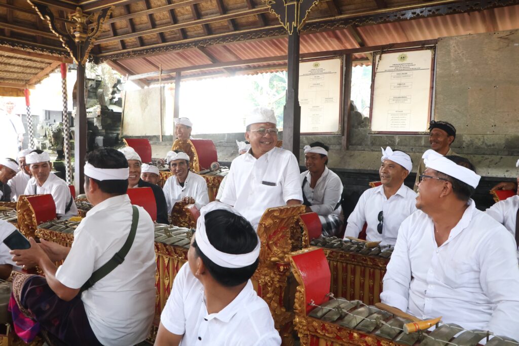 Bertempat di Pura Merajan Kanginan, Gubernur asal Desa Sembiran, Buleleng ini tidak hanya hadir untuk persembahyangan, tetapi juga secara aktif terlibat dalam megambel (menabuh gamelan) bersama para pemedek. Tarian sakral Topeng Sidakarya yang dipentaskan di Jaba Pura pun semakin hidup dengan alunan gamelan yang dipimpin langsung oleh orang nomor satu di Bali tersebut.