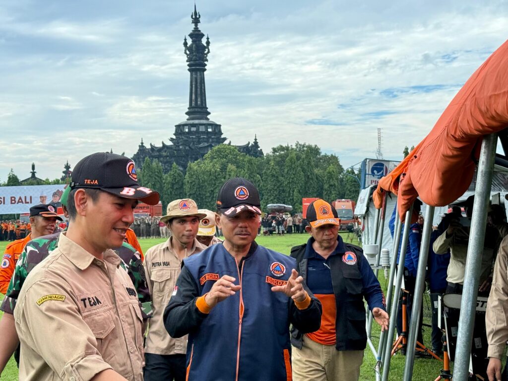 Sebelum apel dimulai, Dewa Indra meninjau kesiapan personel, peralatan, dan kendaraan operasional. Ia mengapresiasi kesiapsiagaan seluruh instansi dan menilai bahwa dukungan logistik telah memadai. “Dalam urusan bencana, kita harus selalu berharap yang terbaik, tetapi siap menghadapi yang terburuk,” ujarnya.